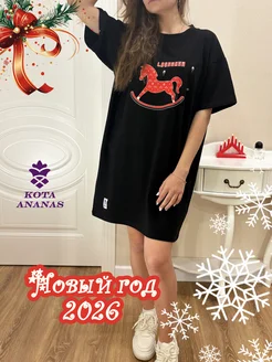 Туника платье футболка новогодняя оверсайз с лошадью