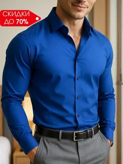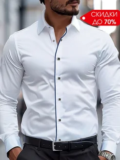 Рубашка приталенная с длинным рукавом на кнопках хлопок