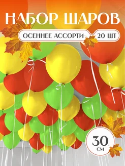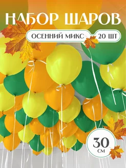 Шары воздушные желтые оранжевые зеленые осенние 20 шт