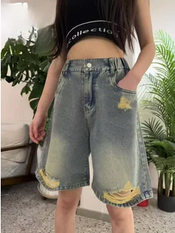 Удлиненные джинсовые шорты багги