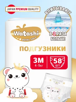 Подгузники для детей размер 3 M от 4 до 9кг (58шт)