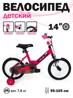 Велосипед VELSE двухколесный детский 14 дюймов розовый