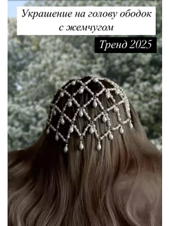 Украшение ободок для волос белый с бусинами жемчужный цвет