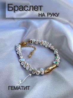 Браслет из натурального жемчуга и гематита на руку