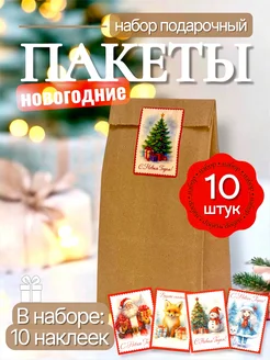 Новогодние крафт пакеты для упаковки подарков, набор 10 шт
