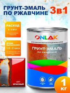 Грунт-эмаль по ржавчине 3 в 1, красная, банка 1 кг, матовая