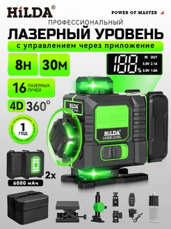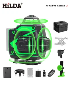 Лазерный уровень нивелир 4D Зеленый 16 лучей 2 АКБ,подарок