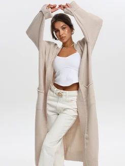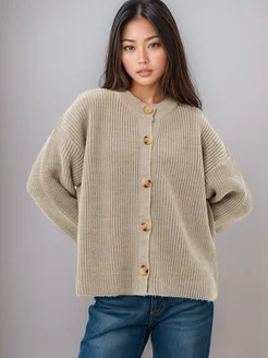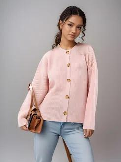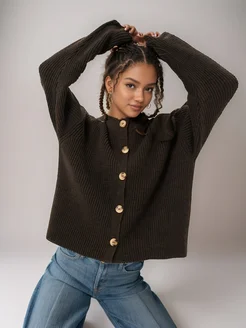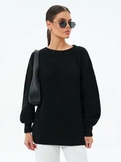 Свитер женский вязаный оверсайз удлиненный рукав фонарик