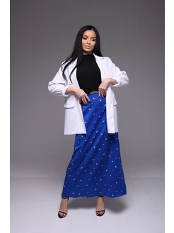 Юбка атласная с завышенной талии длинная шелковая