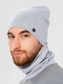 Шапка осенняя и снуд демисезонная тонкая весенняя рибана