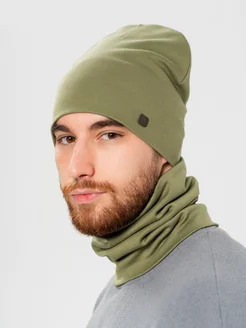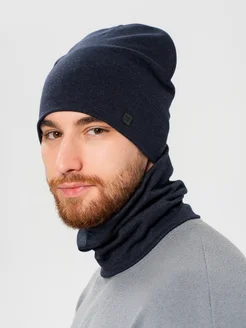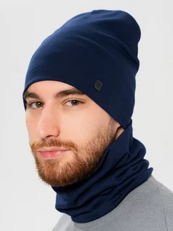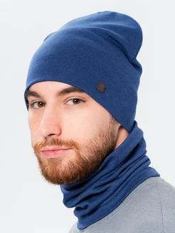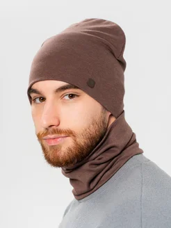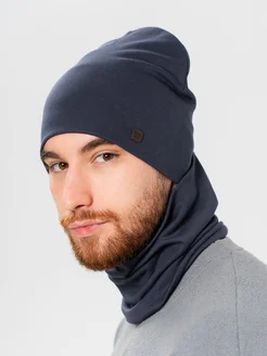 Шапка бини и снуд трикотажная лопата осень весна рибана