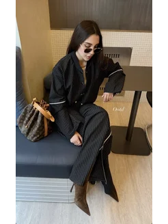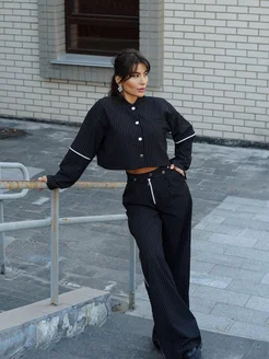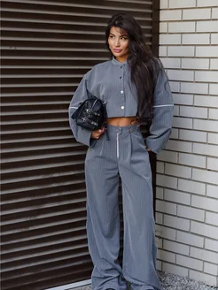 Костюм женский брючный в полоску пиджак укороченный