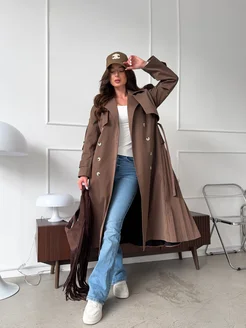 Плащ тренч демисезонный длинный оверсайз с поясом