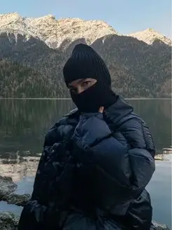 Балаклава черная трансформер зимняя вязаная теплая мужская