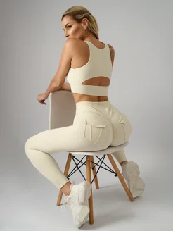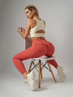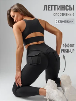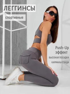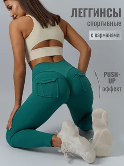 Лосины спортивные пушап леггинсы для фитнеса с карманами