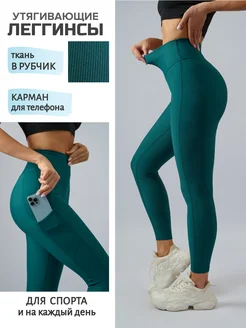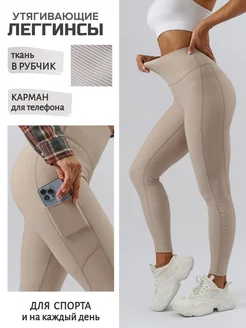 Леггинсы спортивные в рубчик лосины утягивающие с карманом