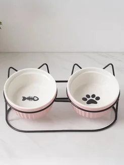 Миска для кошки и собак керамика на подставке 2шт по 300мл