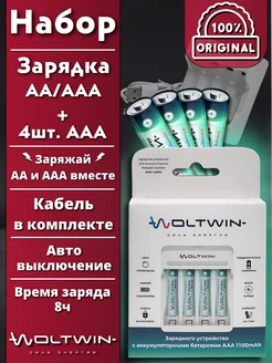 Зарядное устройство + 4 АКБ батарейки ААА 1100 мАч