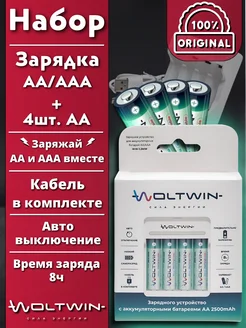 Зарядное устройство USB для аккумуляторов + 4 АКБ АА 2500mAh