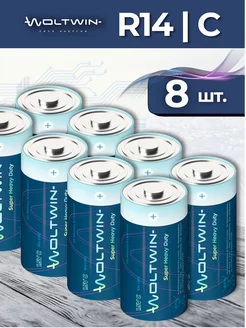 Батарейки средние R14. Элемент питания С (LR14, R 14) - 8 шт