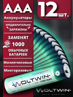 Аккумуляторные батарейки AAA R03 NI-MH 1100mAh - 12 шт