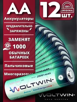 Аккумуляторные батарейки R06, АА (HR6) 2500mAh - 12 шт