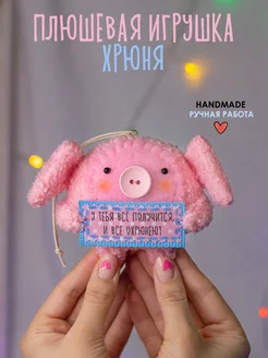 Плюшевый поросёнок игрушка ручной работы с надписью