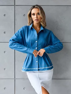 Рубашка джинсовая летняя с длинным рукавом