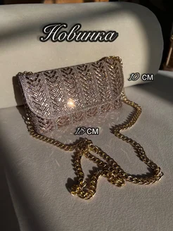 Сумочка кросс-боди со стразами. Клатч на цепочке