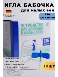 Иглы бабочки для вливаний и капельниц (стерильная) 23G 10 шт