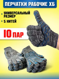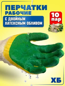 Перчатки рабочие строительные ХБ с ПВХ 10 пар