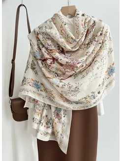 Шарф кашемир палантин зимний теплый в клетку бежевый