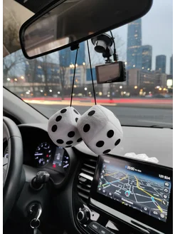 Игрушка на зеркало авто "Кубики-кости" Белые (60х60х60мм)