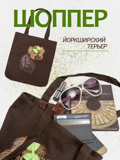 Сумка шоппер с вышивкой "Йоркширский терьер"