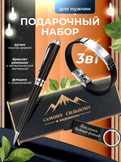 Подарочный набор мужчине - ручка, браслет, флешка 32гб