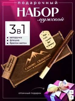 Подарочный набор мужчине - ручка, брелок, флешка 32гб