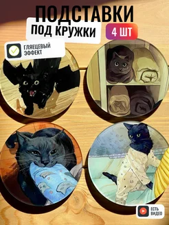 подставки под кружки забавные котики 4 шт