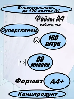 Файлы А4 плотные глянцевые 80 мкм 100 штук