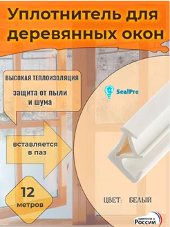 Уплотнитель для деревянных окон в паз, 12 метров, белый