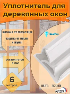 Уплотнитель для деревянных окон и дверей в паз, 6 м, белый