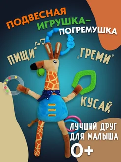 Игрушка погремушка Жирафик для новорожденного с грызунком