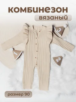 Комбинезон для новорожденных и малышей вязаный в рубчик