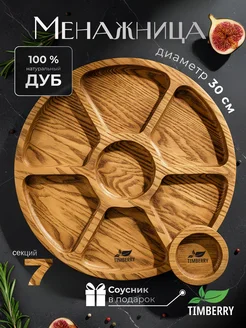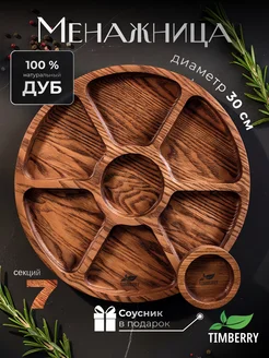 Менажница деревянная круглая 30 см с соусником