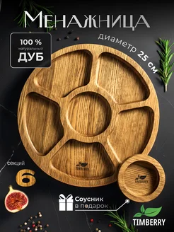 Менажница деревянная круглая 25 см с соусником