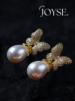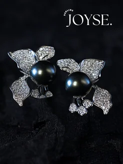 Premium серьги с жемчугом цирконий CZ позолоченные 18K