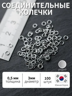 Соединительные колечки 3мм родированные, 100 штук Корея