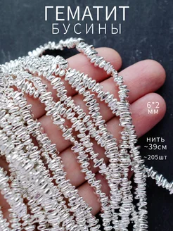 Нить бусин галтовка из серебристого гематита 6*2мм