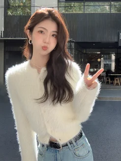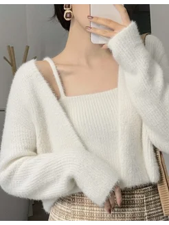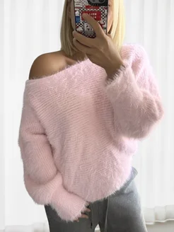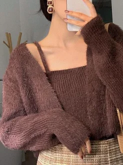 Кофта свитер вязаная пушистая с топиком