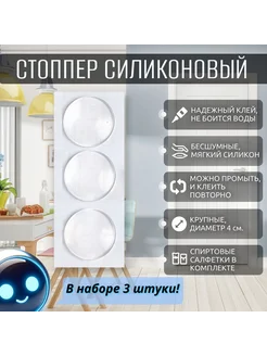 Стоппер силиконовый для двери настенный самоклеящийся 3 шт