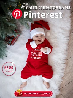 Новогодний комбинезон слип с шапочкой для новорожденного